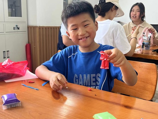 超輕黏土手工制作屬于一門創新課程。孩子們通過自己的構思、想象,利用一些簡單的工具進行創作與表現。不但可以提高孩子們的想象力、創造力、觀察力、注意力,還能培養他們認真、耐心、細致的好習慣。在志愿者的指導下,孩子們大展身手,一件件創意十足的作品在他們手中誕生。