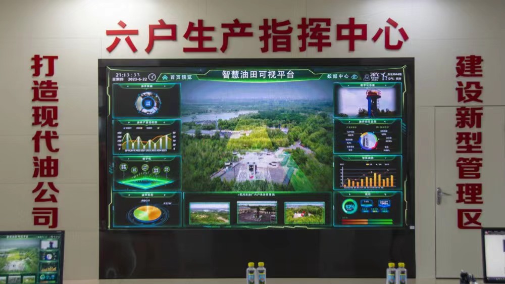 首先,實踐隊成員來到六戶生產指揮中心觀看視頻,了解六戶生產管理區正以打造現代油公司,建設新型管理區”為新主題,著力打造綠色高效勘探開發“地下高效采油、地上觀光旅游”的新模式。隨后,講解員帶領實踐隊 乘坐觀光車,繞行濕地公園并展開介紹。沿途講解員介紹了美麗的濕地公園景色,表現出六戶管理區嚴格落實習總書記“綠水青山就是金山銀山”的綠色發展理念。最后,實踐隊成員 參觀六戶智慧化油田管理平臺并與六戶中心老師就新能源開發問題展開討論。