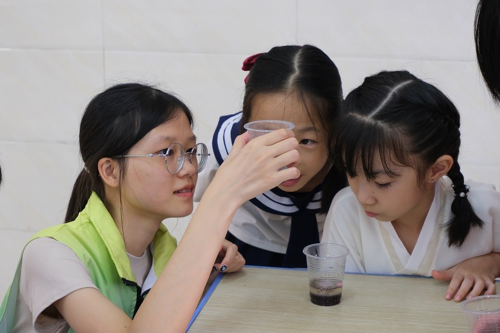 (通訊員 賴錦瑩)“創(chuàng)新思維”已成為習近平總書記近幾年在不同場合講話中使用的高頻熱詞。為了提高學生的創(chuàng)新思維能力,讓課堂成為學生勇于創(chuàng)新的主場地,佛山科學技術學院源心·夏鄉(xiāng)隊伍近日在廣東省汕尾市海豐縣附城鎮(zhèn)第二小學開展了科學實驗小課堂。使用簡單的實驗材料,通過簡單的實驗操作就產(chǎn)生了神奇的實驗現(xiàn)象,孩子們在一片驚奇的呼喊聲中深刻感受到了科學實驗的魅力。最后,隊員一步步引導同學們理解實驗原理。好奇心是科學探索的原動力。科學的種子一旦播下,就極有可能在他們心中長成一棵棵參天大樹。