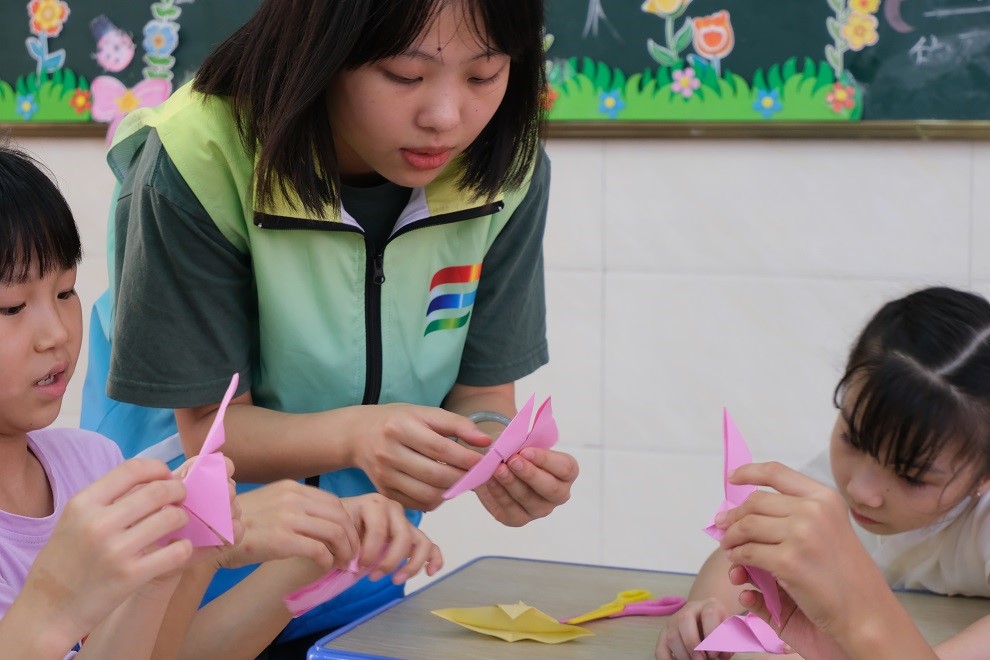 圖為隊員展示如何制作小蝴蝶。通訊員 賴錦瑩 攝
