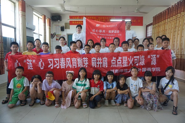 歲月不居,時節如流,從緊張到松弛,從陌生到熟悉,當我回想起這十四天的點點滴滴,涌入腦海的是初到時的炎炎烈日,涌入腦海的是正午時突如其來的大雨,涌入腦海的是見面會上同學們豐富的才藝與羞澀的笑容,涌入腦海的是實踐團成員一遍遍不厭其煩地備課、磨課,只為帶給當地學校的學生們最精彩的課堂,不辜負他們的支持與希望;涌入腦海的是我們向當地老師請教引起學生興趣的方法,并將其付諸實踐的欣喜;涌入腦海的是當我緊張不安站在講臺上,卻看到學生們一雙雙充滿著對知識的渴望的眼睛;涌入腦海的是學生們課上的積極舉手發言,涌入腦海的是學生們從校門口走進教室時歡快的步伐和熱情洋溢的笑容;涌入腦海的是學生們無限的精力;涌入腦海的是學生們認真的模樣;涌入腦海的是學生們向我們分享零食的慷慨與大方;涌入腦海的是與實踐團成員相處時的愉快與放松,涌入腦海的是領導與家長的肯定……情緒是可以感染他人的,其中快樂最是容易,這些時刻讓我的心里向灌了蜜一樣甜,我無比感激當時選擇參加實踐的自己。