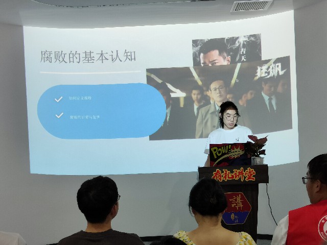 講清廉旅途的最后一站,實踐團深入增山社區,與社區書記探討清廉家風在社區傳承的大致情況,并以“腐敗”為主題,分“如何定義腐敗”和“腐敗的后果與危害”兩大板塊為內容的PPT進行宣講,分析如何打造清廉家風建設,讓當地人們更加了解優秀家風建設對清廉社會和校園建設的重要影響力。