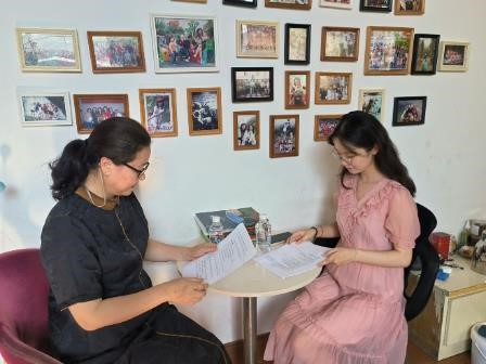 圖為實踐團成員對陳幼萍園長進行訪談。通訊員 秦嘉悅 供圖
