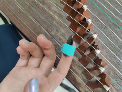 除此之外,在7月7日團隊又來到了西安錦瑟藝術培訓中心,雖身為培訓機構但是在這里團隊成員對于義甲的了解又進一步加深,他們對于義甲的認識更為詳細,義甲的種類也涉及更廣,據老師解釋除在平時彈奏使用外,每一副義甲都被很好的保護珍藏起來,因為每一首優美的曲目都離不開一副好的義甲。