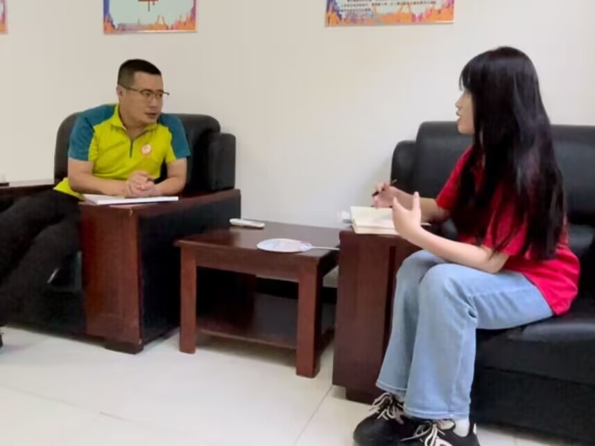 圖為團隊成員采訪同大鎮社會工作服務中心常務副站長趙克勇。