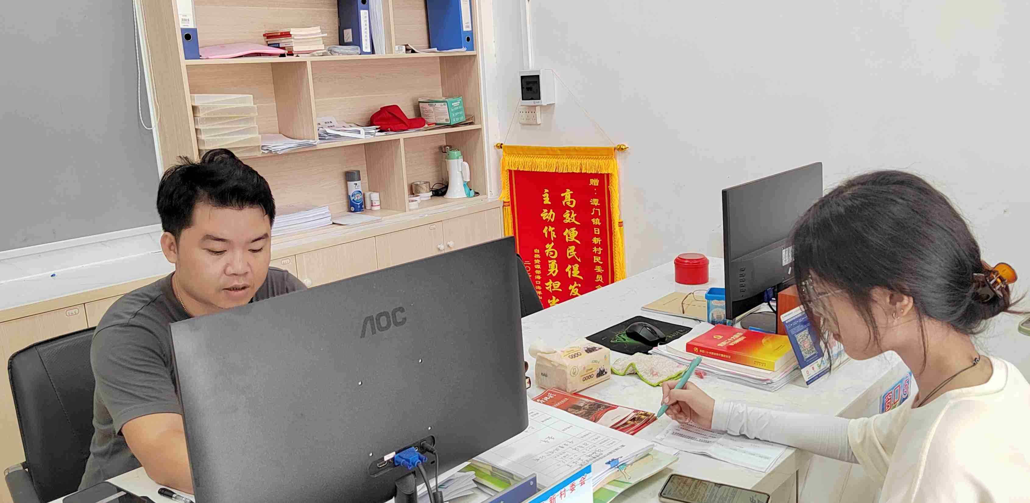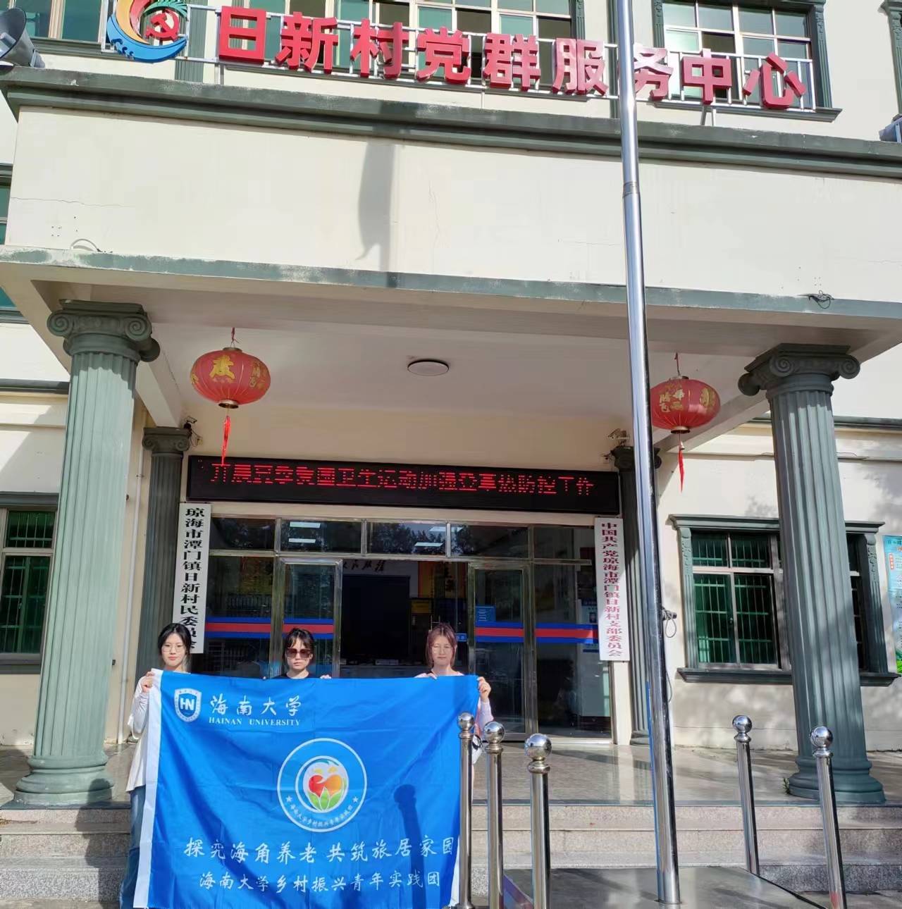 圖為調(diào)研團(tuán)隊(duì)于日新村村委會(huì)。“探究海角養(yǎng)老,共筑旅居家園”調(diào)研團(tuán)隊(duì)通訊員 宋璇 攝。