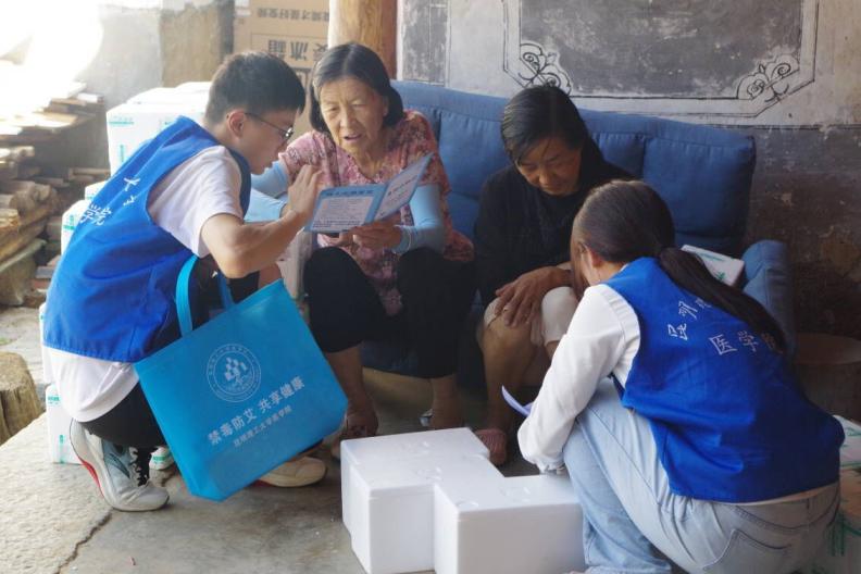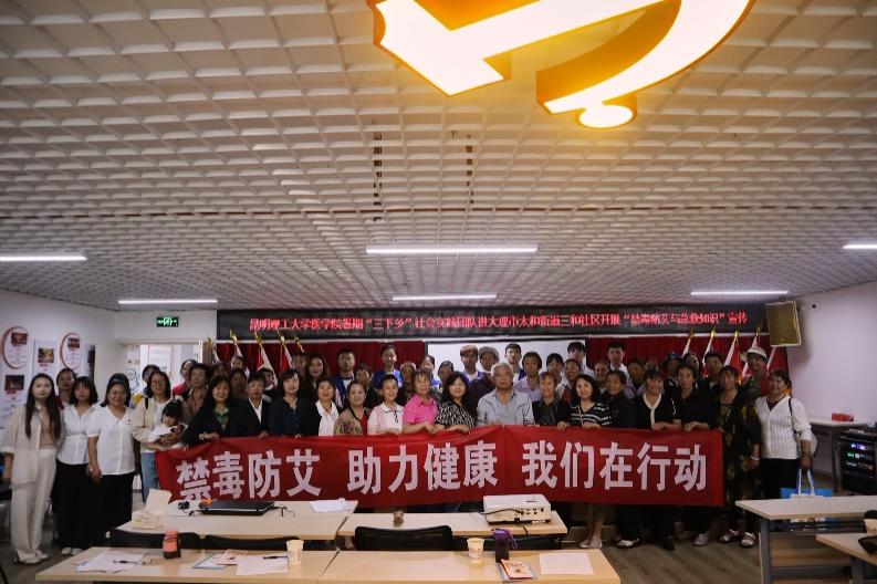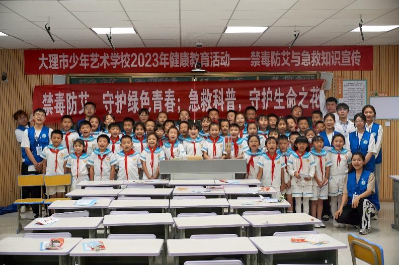 為增強當地居民的防艾意識,普及醫療急救知識,進一步加深當地居民對毒品和艾滋病的認識,提高當地居民的自救互救能力,保障當地健康安全,助力當地平安社區與校園建設,2023年7月4日,醫學院“三下鄉”志愿團隊前往大理市太和街道三和社區及大理市少年藝術學校開展禁毒防艾與急救知識宣講活動,活動受到社區居民與學校師生的喜愛。