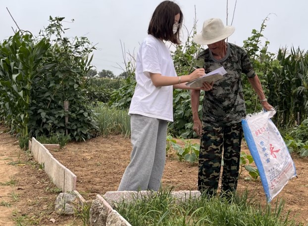 圖為實踐隊員實地采訪當地菜農。 周鈺晴 供圖