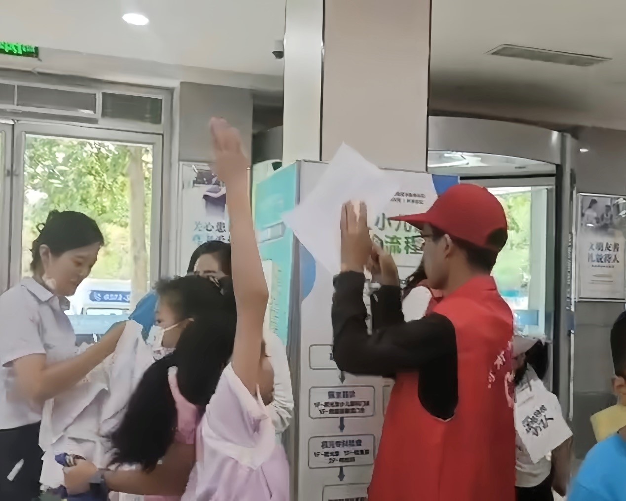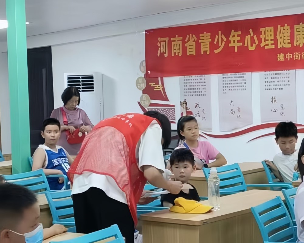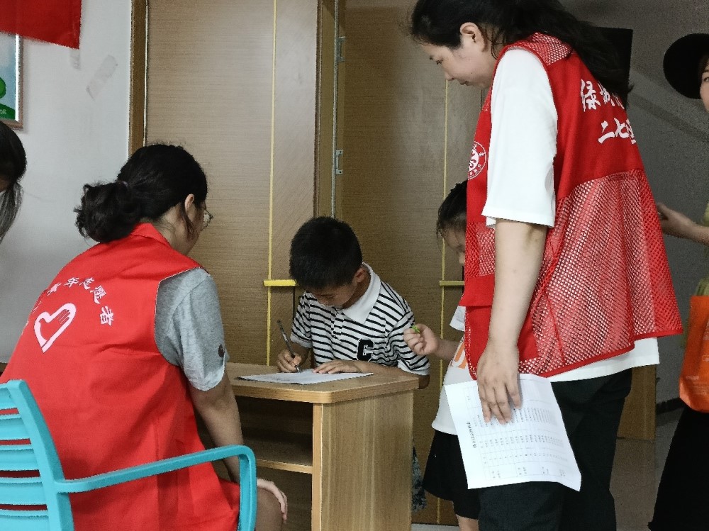 圖為志愿者帶領孩子們登記信息。