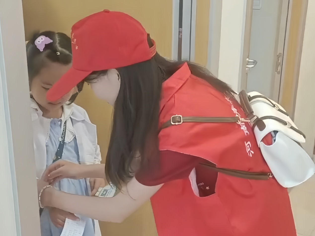 圖為實踐隊員何娟為孩子們帶手環。