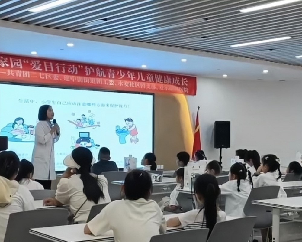 圖為眼科醫生為家長們開展的兒童用眼健康和近視防控講座。