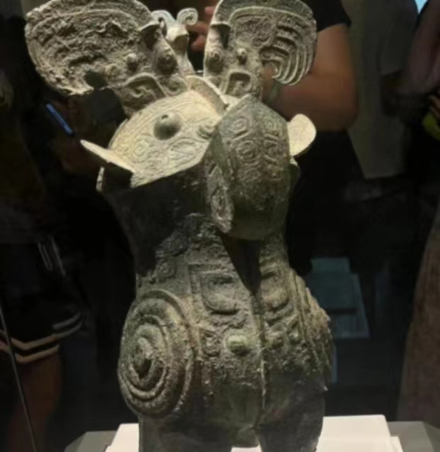 8月 7日早晨,早早等待在河南博物館門口的團(tuán)隊(duì)成員們開啟了他們的探索之旅,穿過長(zhǎng)長(zhǎng)的人群,進(jìn)入名為夏商的展廳。映入眼簾的便是那一個(gè)個(gè)用青銅鍛制燒煉而成的酒器、飾件、樂器。看著這些器件,幾千年前舉辦的一場(chǎng)盛大的宴會(huì)仿佛在眼前緩緩開始,他們載歌載舞、觥籌交錯(cuò)、舉杯歡飲。這些青銅器承載著先人的智慧與風(fēng)采,訴說著他們的歷史與輝煌。