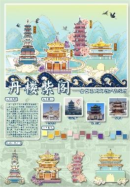 - 該一系列文創以金昌市圣容寺塔、北武當山、永昌鐘樓、文昌閣以及紫金花等元素為主題,展現了金昌市獨特的城市魅力。通過描繪這些建筑與景色,捕捉了金昌市豐富的人文景觀和迷人之處。圣容寺莊嚴古老,鐘鼓樓高聳入云,紫金花絢麗多彩,都展現了金昌的悠久歷史。整體文創通過探索其特色文化以及應用其鮮明色彩,呈現金昌市的獨特魅力,其設計理念是通過貼紙、印章、等形式留念金昌。其中吊墜應用琺瑯的工藝,使得受眾人群更加廣泛,也讓觀賞文創時使大家感受到金昌豐富的人文景觀和令人陶醉的城市底蘊。