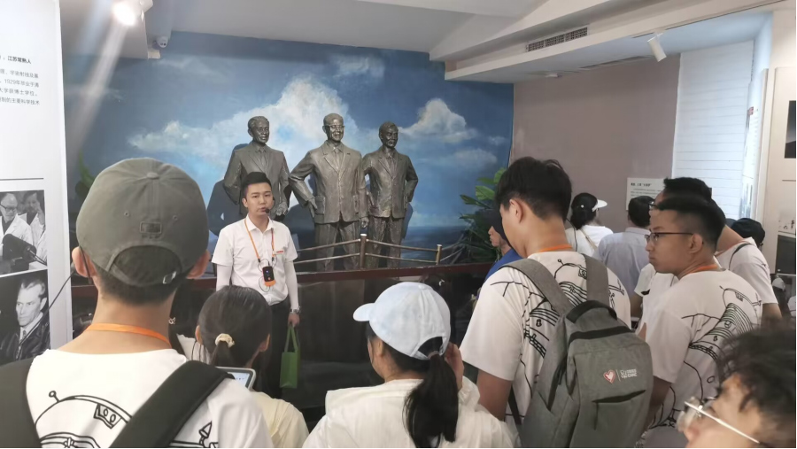 在中國兩彈城,實踐隊員們依次參觀了兩彈歷程館、將軍樓、鄧稼先故居等舊址,學習了解了中國核武器的發展歷程以及兩彈元勛鄧稼先、王淦昌等人的事跡,深刻領悟了先輩們“熱愛祖國、無私奉獻,自力更生、艱苦奮斗,大力協同、勇于登攀”的偉大精神,在鄧稼先先生的塑像前,實踐隊的同學特地獻上了鮮花以示緬懷和敬仰,并立志以先輩們為榜樣,繼續傳承和發揚“兩彈一星”精神。