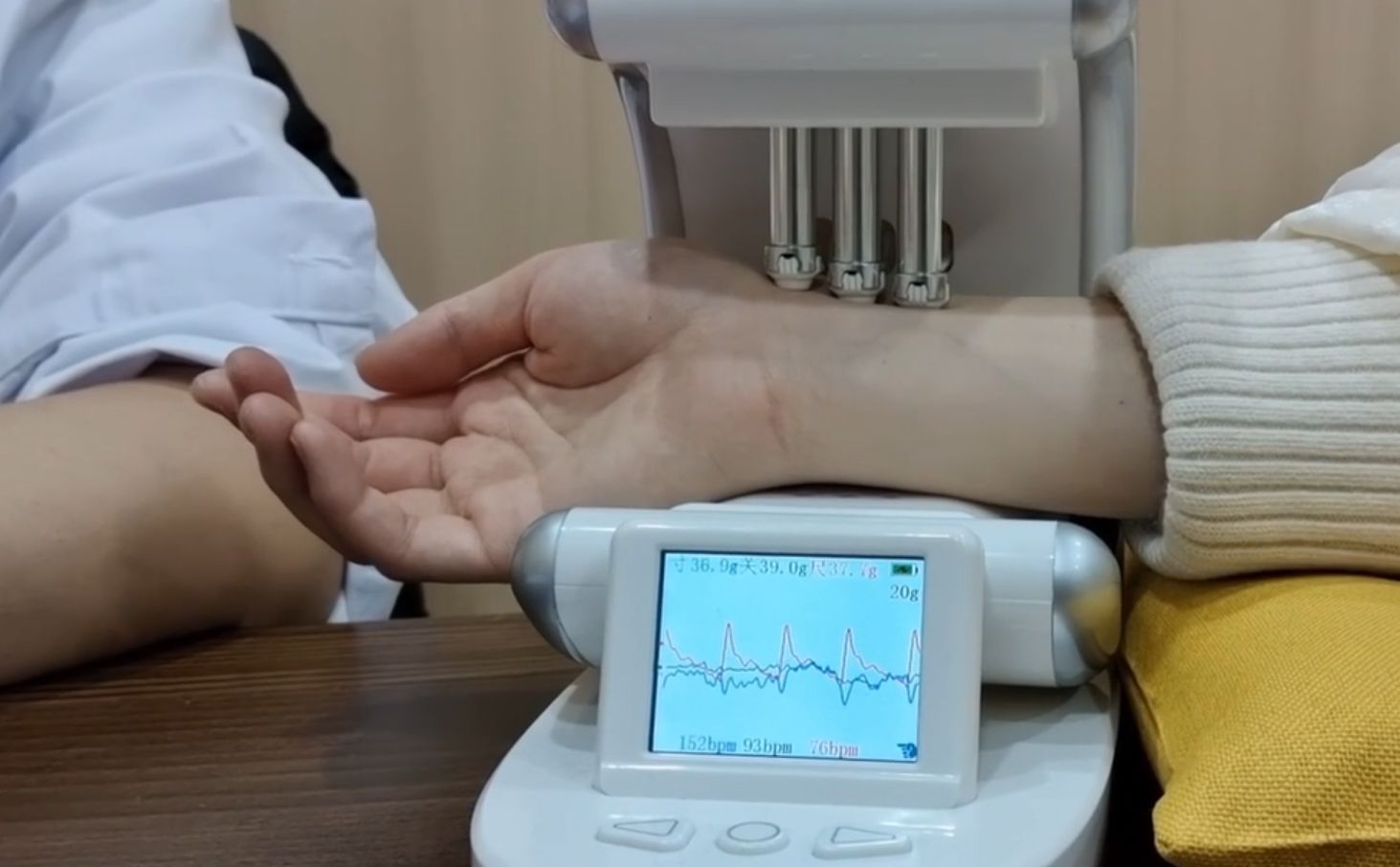 1月30日下午,調(diào)研小隊還走進小市社區(qū)醫(yī)院,發(fā)現(xiàn)康復、針灸科室均配備了新型設備,如短波治療儀、中醫(yī)定向透藥治療儀等,科技已經(jīng)深入百姓日常生活。五季智能中醫(yī)診所作為南京首家AI中醫(yī)診所,引入了智能脈診、中醫(yī)智能輔助診療系統(tǒng)等技術(shù),市民逛街之余也能便捷地接受中醫(yī)診療。