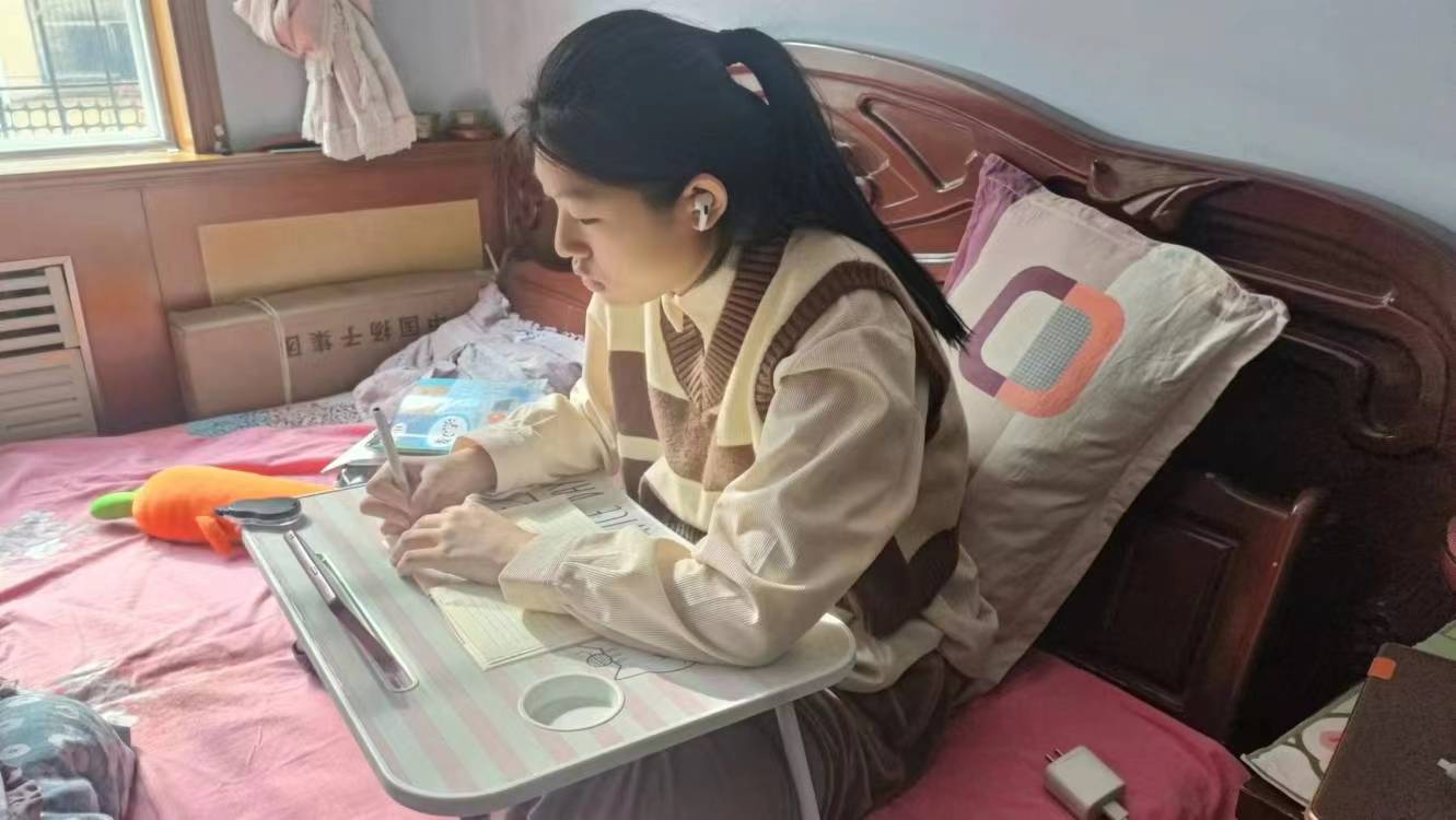 寒冬讓“一起云運動”板塊完成的難度增大,但堅持運動有助于保持身體的健康狀態(tài),提高免疫力,對抗寒冷季節(jié)帶來的不適。為了提高小朋友的積極性,我與她約定了每天都會進行互動打卡督促,沒想到的是,小朋友給了我很大的驚喜。不僅井然有序的進行著每日運動打卡,還在幫著家里為春節(jié)做準(zhǔn)備,打掃房屋、購買年貨、掛花燈、貼春聯(lián)等。她經(jīng)常會與我分享自己學(xué)會的新的帕梅拉動作,熱情的等待著我的夸獎與鼓勵。初次聯(lián)系時我與她的的緊張感都全然消失,現(xiàn)在展現(xiàn)在我面前的是一個天真活潑卻又意志堅定的小女孩。記憶瞬間被拉回到了我的初中時代,那時的我們每天都充滿著干勁兒與活力,為了能在中考體育測試中多拿分?jǐn)?shù),全班擰成了一股繩,不分冬夏的堅持鍛煉,即使是冬天的早晨,只要你起個大早去晨跑,準(zhǔn)能遇見幾個班里的同學(xué)早已熱身完畢……如今與中學(xué)生相遇云端,也讓我重拾了兒時的那份動力與積極地心態(tài),任何時候都不能主動放棄或遺忘健康運動的重要性,它能讓我們獲得最原始的放松與愉悅感。我支教的小朋友有著和當(dāng)時我一樣的年齡,有著同樣的沖勁與目標(biāo),相信小朋友會帶著這份韌勁闖出屬于她自己的未來。
