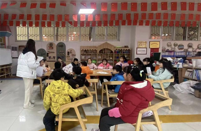 深植基層:編織非遺的線下宣講即便是在互聯網時代的背景之下,實打實地持穩線下的教育,讓非遺文化走入當地以及周邊的校園也是必不可少的環節。學校作為教育活動開設的主體,也必須打造有利于非遺技藝傳承下去的氛圍,將草編等傳統技藝融入到文化課堂教學中。秉持著“教育要從小抓起”的理念,我實踐小組成員選擇走進當地幼兒園,以根植于基層的“接地氣”的方式,寓教于樂,為幼兒園的孩子們帶來了一堂別開生面的草編非遺宣講課。課堂上,成員們首先以平實生動的語言,深入淺出地講述了有關萊州草編的故事,引得小朋友們紛紛展露出了對于草編這項非遺技藝的好奇與熱情;其后,各成員們分工協作,發揮自身優勢,帶領著小朋友們親自上手操作了這項手工技藝,以玩游戲般輕松愉快的體驗模式,積極與小朋友交流互動,讓他們深深體會到了草編藝術的精細之美與非遺傳承人的不易。整堂非遺宣講課在小組成員與孩子們的歡聲笑語中完美收尾。