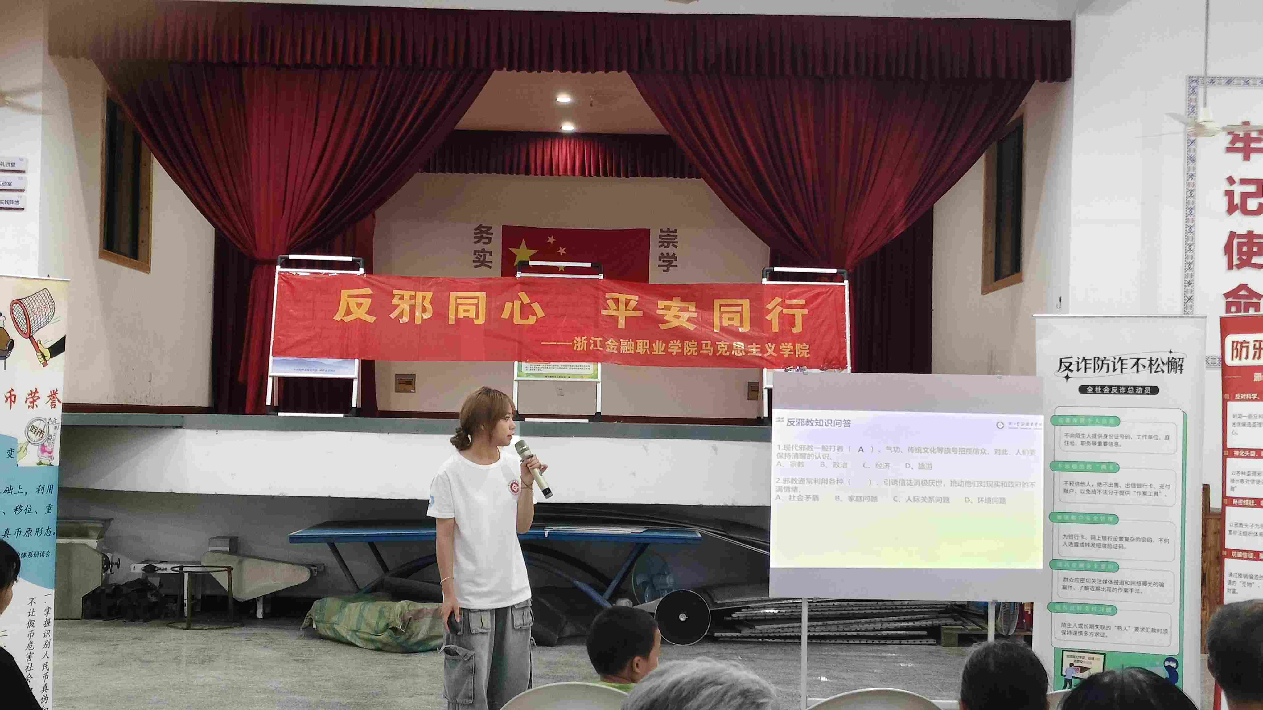 為推進思政小課堂與社會大講堂相結合,2024年7月3日上午,浙江金融職業學院“畬鄉行,傳文化,防騙識假反邪教”——馬克思主義學院桐廬縣莪山畬族鄉暑期社會實踐團,于桐廬莪山畬族鄉堯山村文化禮堂開展了反邪教、反詐騙、反假幣的“三反”宣講活動。