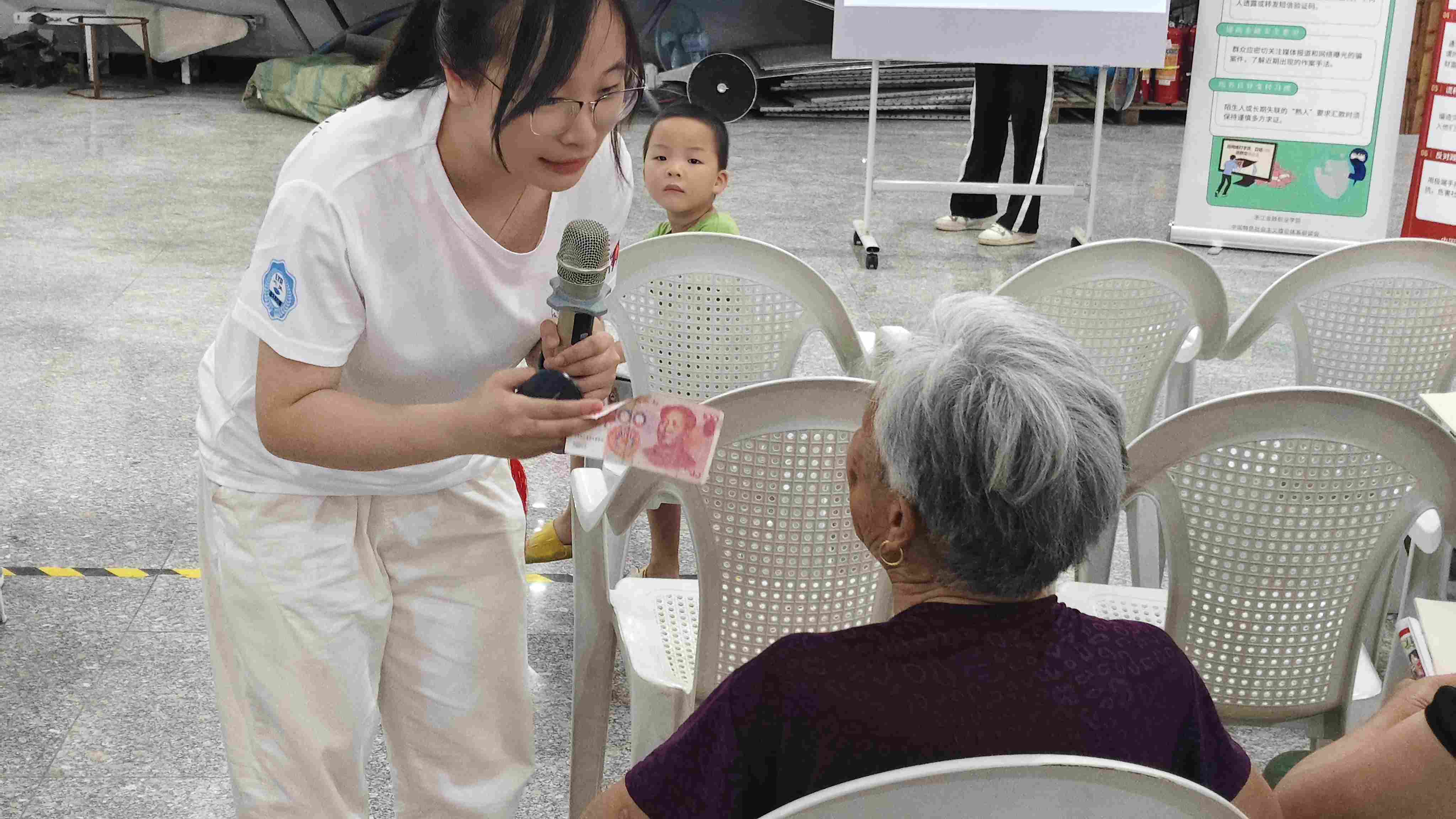 緊接著,反假幣宣講員王培菊以“一張假幣的自述”開頭,親切地講解著人民幣紙幣的票面主景圖案、防偽特征以及識別方法等相關知識,與村民們進行了深入互動。