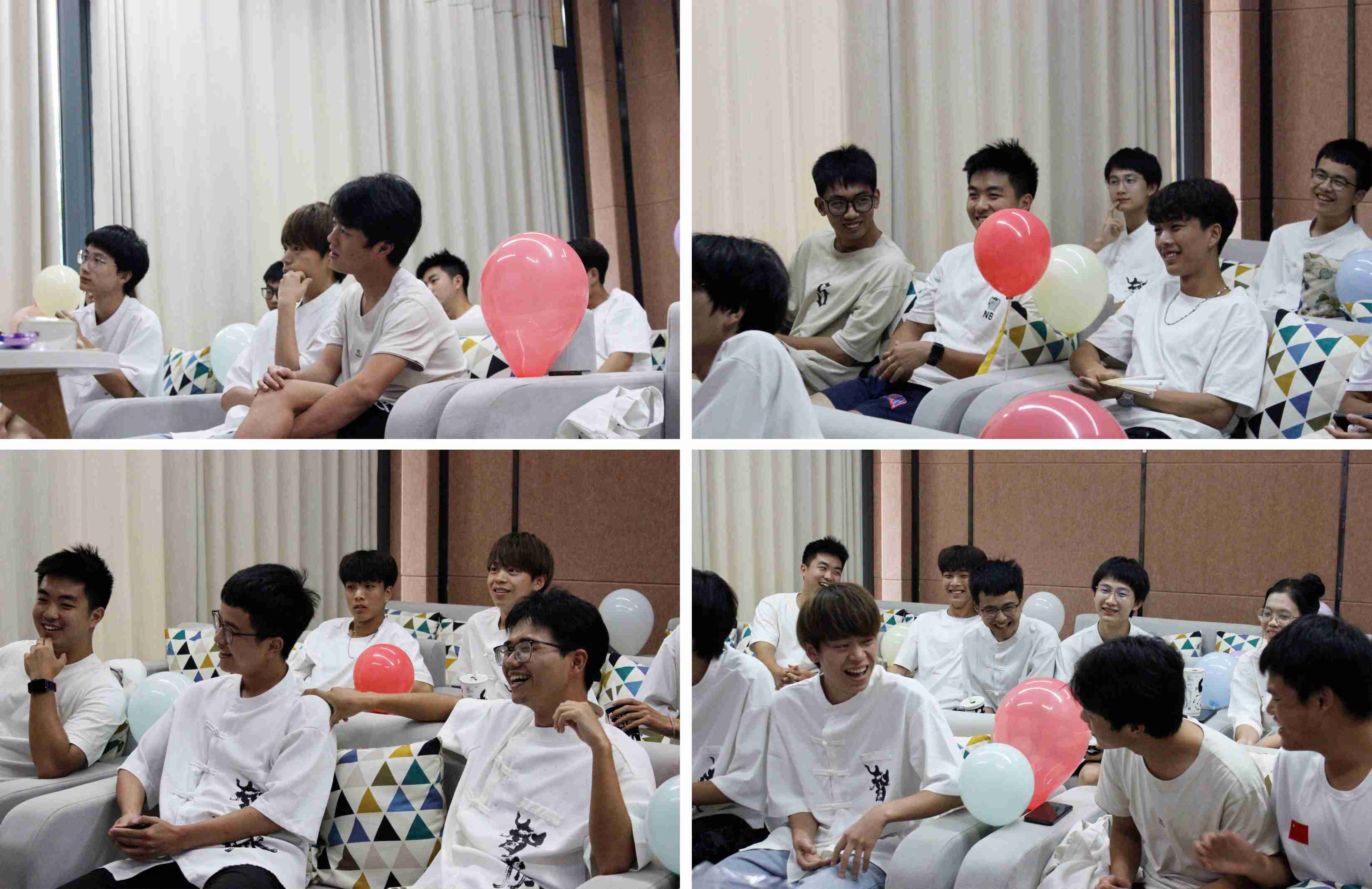 下午,實(shí)踐團(tuán)成員們提前來(lái)到重慶移通學(xué)院魚(yú)城書(shū)院空格影音室搬運(yùn)物資、布置場(chǎng)地,為大會(huì)現(xiàn)場(chǎng)營(yíng)造出一種輕松、愉快的氛圍。總結(jié)大會(huì)第一個(gè)環(huán)節(jié)名為“猜猜我是誰(shuí)”;實(shí)踐團(tuán)成員們經(jīng)過(guò)七日的共同相處后,彼此之間產(chǎn)生了連結(jié),基于此,現(xiàn)場(chǎng)PPT上滾動(dòng)著一個(gè)接一個(gè)稱號(hào),如“最文質(zhì)彬彬”、“最可愛(ài)”等,實(shí)踐團(tuán)成員需要去猜測(cè)每一個(gè)稱號(hào)所對(duì)應(yīng)的成員,大家在歡聲笑語(yǔ)中又回憶、了解了彼此。第二個(gè)環(huán)節(jié)是合川峽硯文化知識(shí)搶答,實(shí)踐團(tuán)成員們?cè)诰o張刺激的搶答中,加深了對(duì)合川峽硯文化的了解,當(dāng)然也有“已讀亂回”的成員,惹得大家開(kāi)懷大笑。第三個(gè)環(huán)節(jié)是“添詞造句”,實(shí)踐團(tuán)成員分為兩組,在每個(gè)詞的增添中有沉默、有歡笑,亦有實(shí)踐團(tuán)的青春。最后,總結(jié)大會(huì)在帶隊(duì)老師的祝福中,悄然、完滿結(jié)束,實(shí)踐團(tuán)亦留下了暫時(shí)的最后兩張合照。