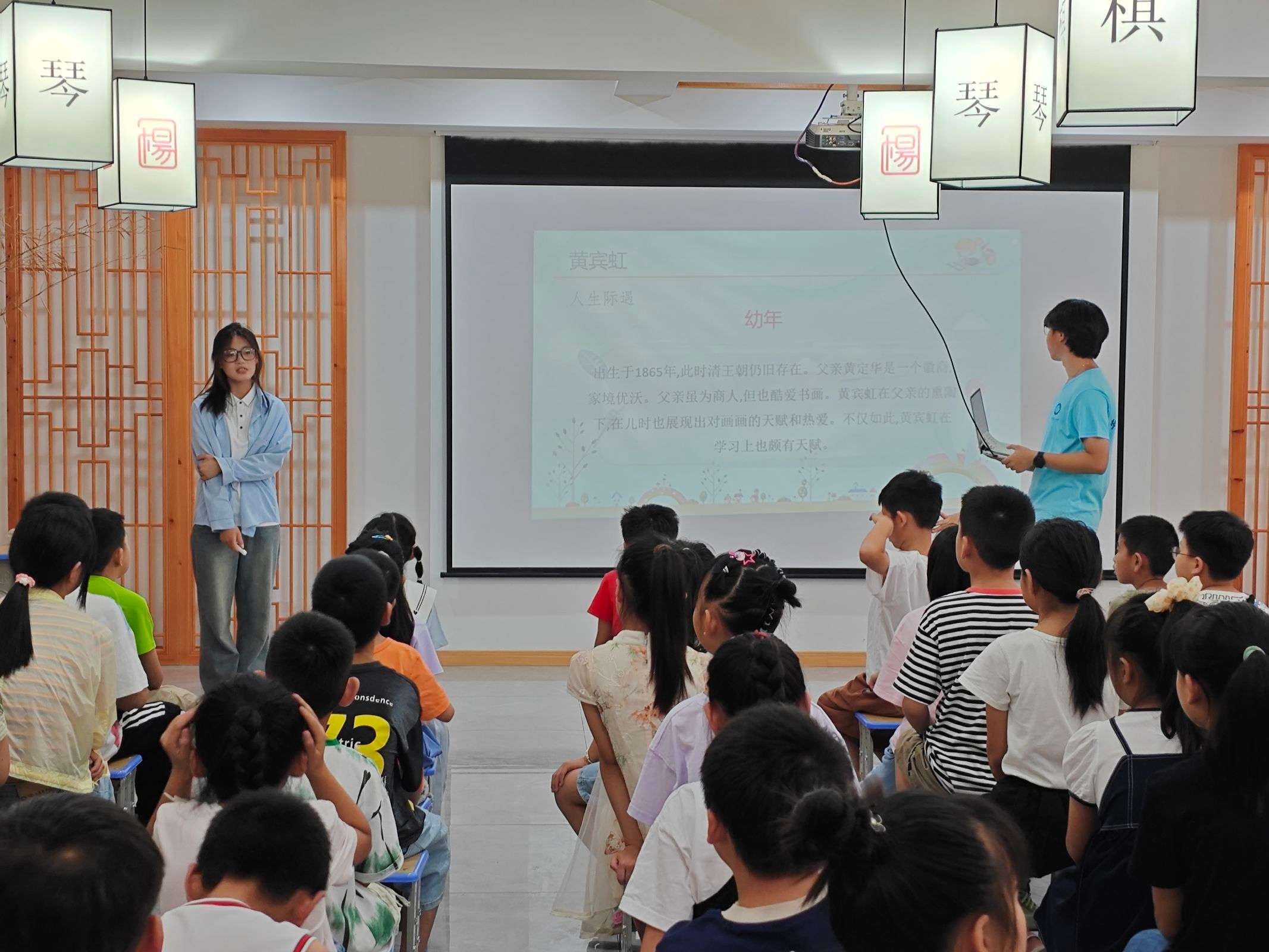 文化入課堂,賓虹精神傳承勢在必行為了促進賓虹精神的宣傳和傳承發(fā)展,促進精神文化帶動鄉(xiāng)村振興發(fā)展,同時也考慮到暑期孩子們的安全問題,為他們營造一個安全快樂的暑假環(huán)境。7月10日,團隊成員走進課堂,向孩子們介紹黃賓虹先生的人生經(jīng)歷和偉大的賓虹精神,以及向孩子們展示黃賓虹先生杰出的水墨畫筆法。每位同學都認真的聽團隊成員講述著,積極主動的和老師互動,為了鼓勵孩子們認真聽講,團隊也為同學們精心準備了各式各樣的小禮品。同時團隊成員也對暑期安全教育進行了系統(tǒng)性的講述,為了提高孩子們的安全意識,團隊成員運用簡單易懂的方式指導孩子們在遇到溺水、校園暴力等事件時應當如何應對處理。