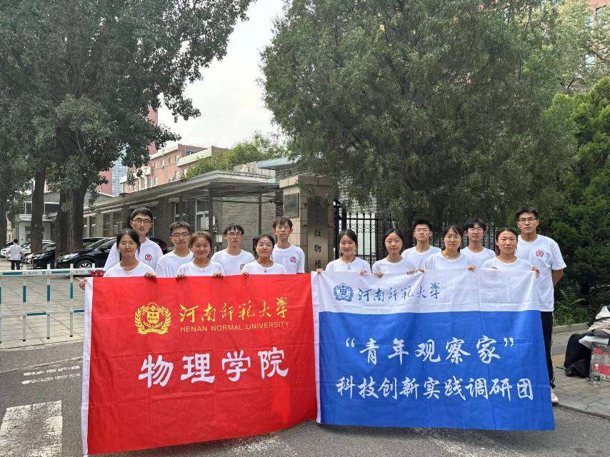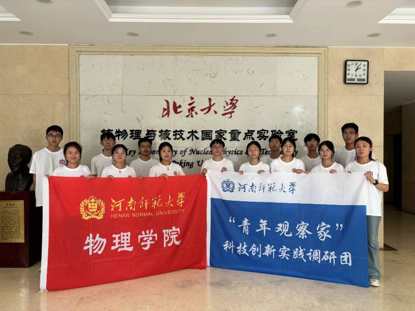 為積極引導(dǎo)大學(xué)生開(kāi)闊眼界,增長(zhǎng)知識(shí),培養(yǎng)創(chuàng)新實(shí)踐能力,提高專(zhuān)業(yè)素養(yǎng), 7月10下午,河南師范大學(xué)物理學(xué)院“青年觀(guān)察家科技創(chuàng)新實(shí)踐調(diào)研團(tuán)”到北京大學(xué)開(kāi)展科技創(chuàng)新實(shí)踐活動(dòng)。調(diào)研團(tuán)全體成員參加了本次活動(dòng)。