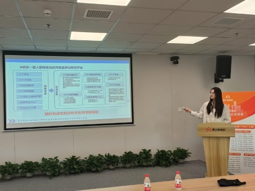 圖為實踐隊向惠之美生活服務集團講解系統(tǒng)情況。中國青年網(wǎng)通訊 巴凱洋 供圖