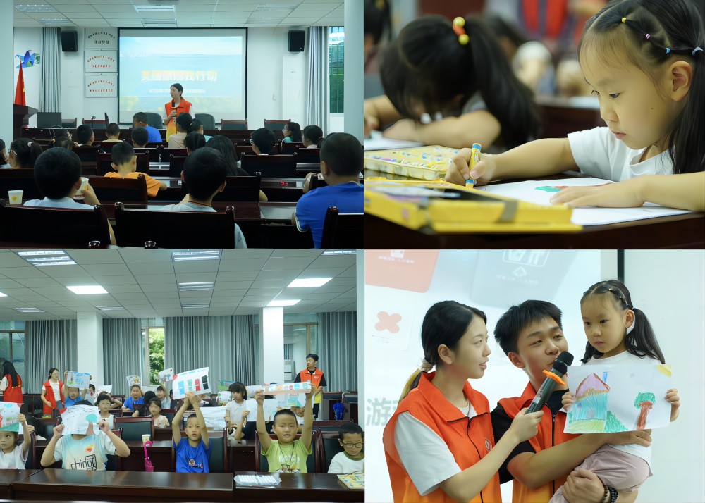 【左上課件講解,右上孩子繪畫,左下成果展示,右下分享想法。通訊員黃佳豪供圖】