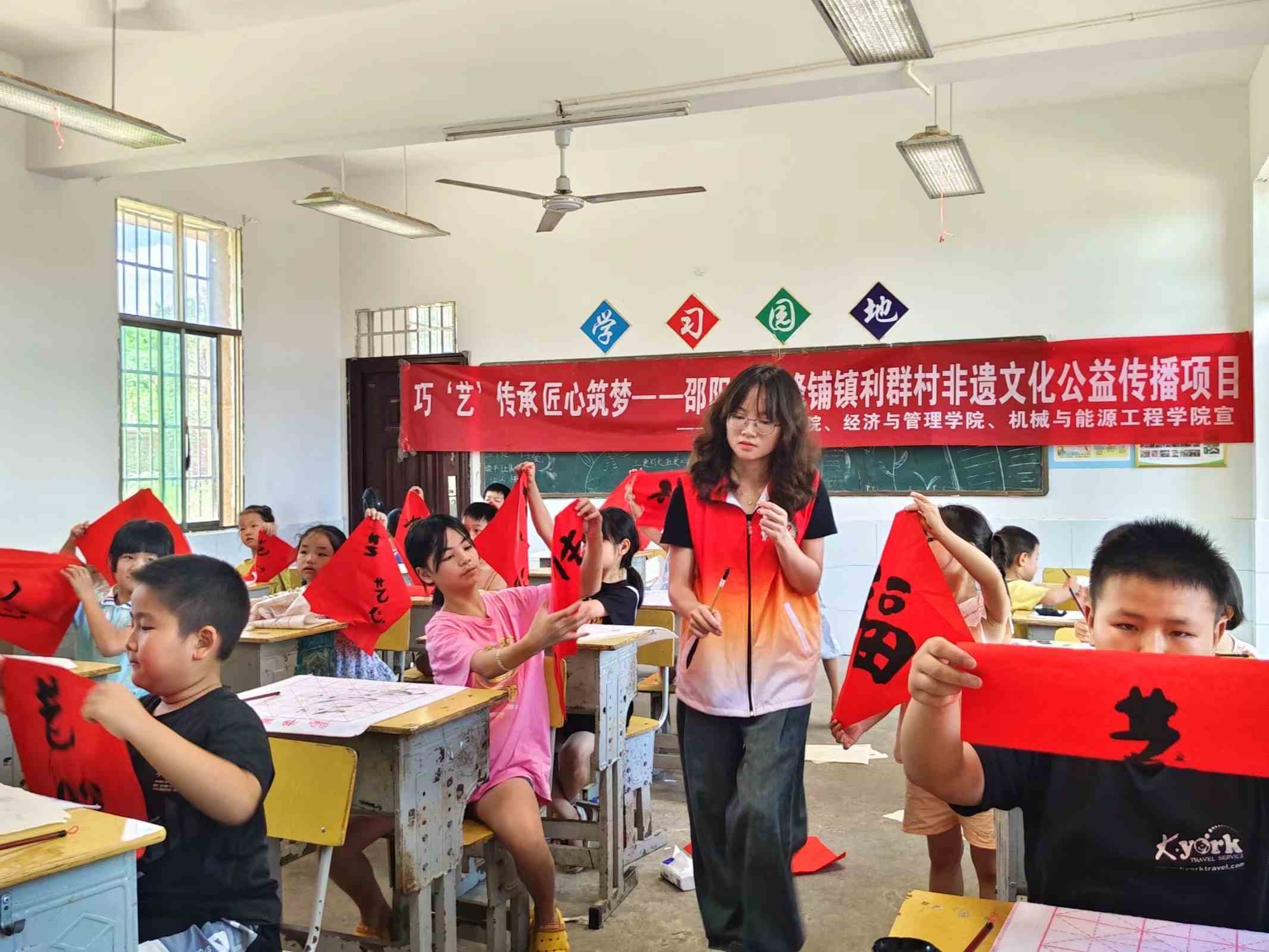 為進一步加強中華非物質文化遺產在小學生群體中的影響力,讓鄉村學子深入了解書法藝術的精髓,增強民族文化認同感,7月16日上午,邵陽學院“巧‘藝’傳承 匠心筑夢”志愿服務隊來到邵陽縣五峰鋪鎮利群村,為當地的孩子們帶來傳統書法課堂。