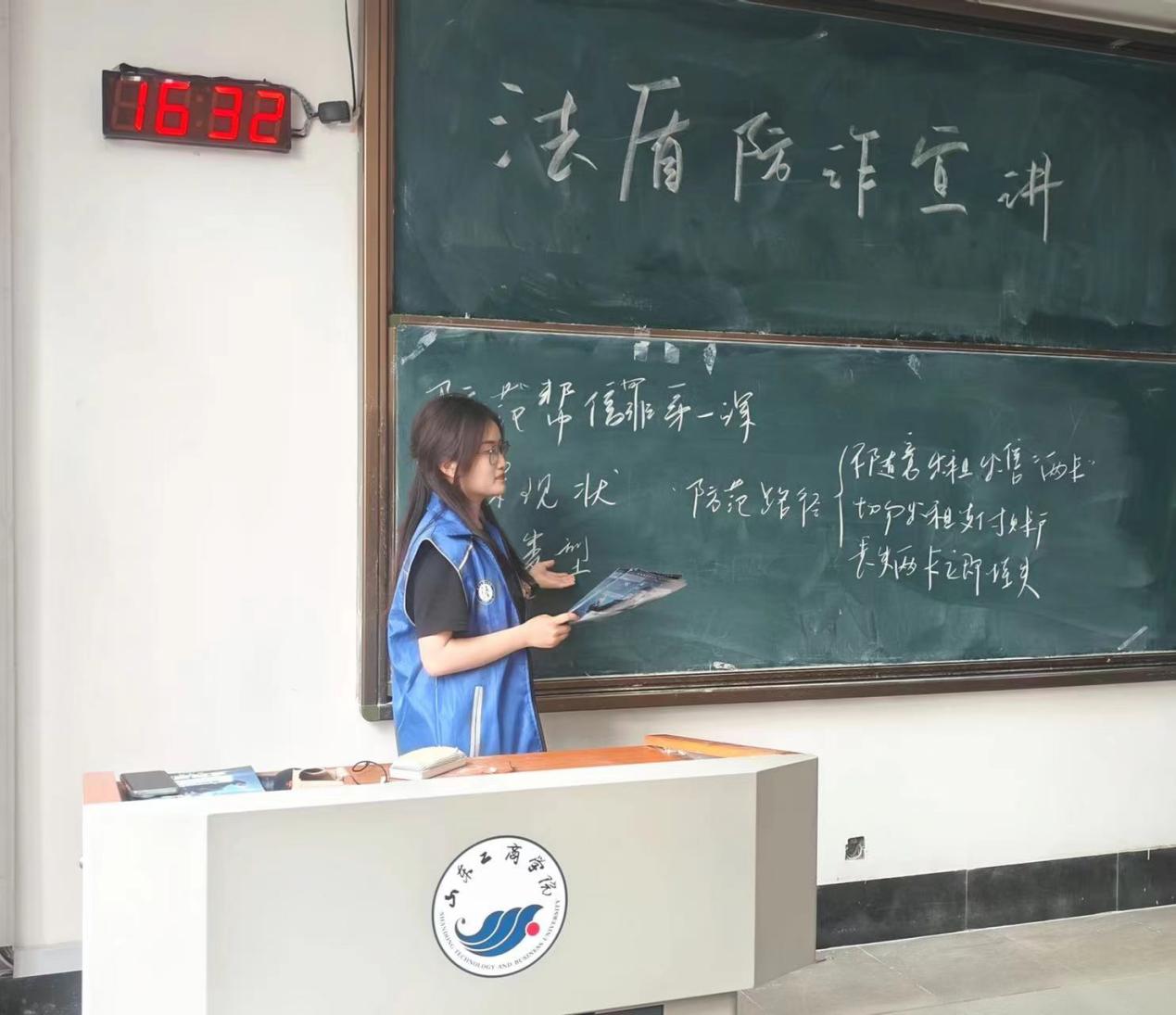 (圖為團隊成員在高校進行宣講 “法盾防詐”實踐隊 湯佳新浩 供圖)