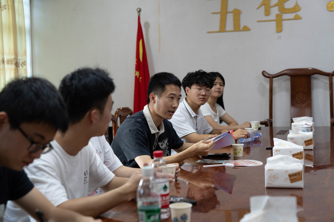 下鄉第一天,廣東工業大學“數緣”團隊與雙華鎮黨政辦書記陳宏基進行見面會交流。