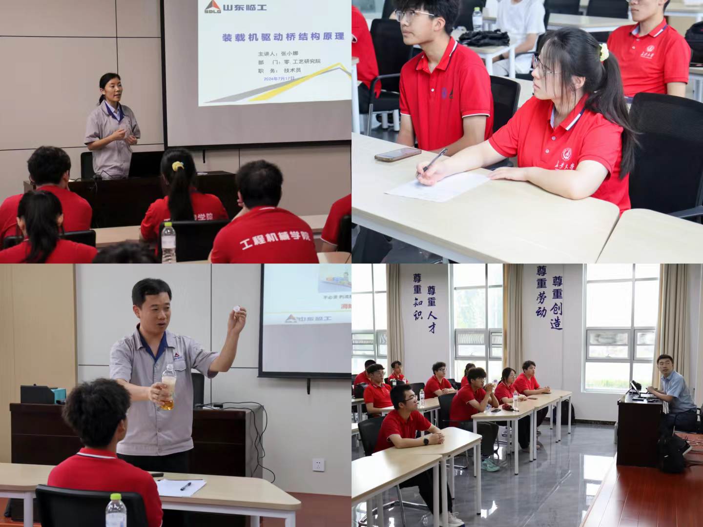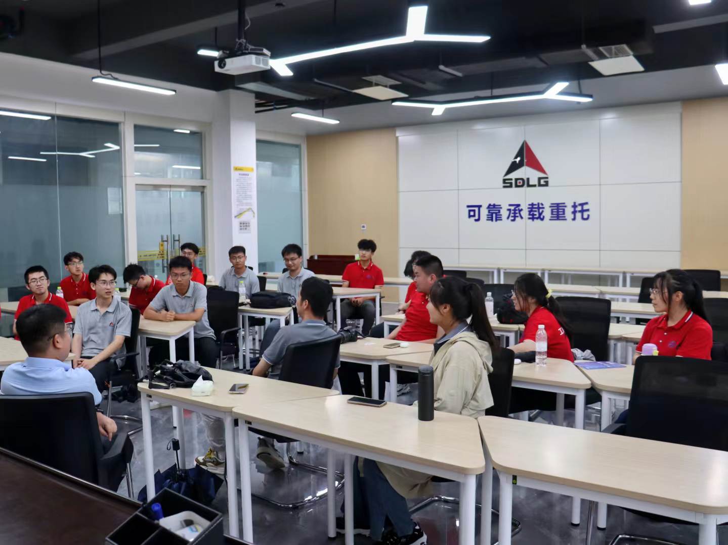 以學為促,用理論武裝頭腦。臨工集團各部門工程師向實踐隊員講授了關于裝載機、挖掘機、激光叉車及其核心部件的結構組成和工作原理。在交流過程中,隊員們了解到目前國內工程機械技術水平與國外還存在一定差距,主要體現在零件的精度、材料的強度以及控制的智能化程度。此外,來自裝載機事業部的周京理老師介紹了臨工的精益生產模式和人才培養戰略。“減少浪費,降本增效”的核心理念給臨工帶來了更高的產能和利潤,使其躍居于國內工程機械行業前列。
