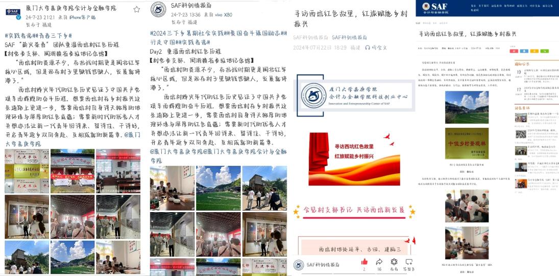 團隊在此次活動中累計發表新聞稿5篇,制作針對游客、當地居民兩類電子版問卷,共收集問卷500余份。自媒體直播9000+點贊,1000+觀看,通過該模式加強對南平紅色資源的宣傳,提高其知名度和吸引力。同時團隊通過抖音、微博、朋友圈等平臺以視頻、軟文的形式進行宣傳推廣,以當地紅色文化資源為載體,對助力鄉村振興起到一定的積極作用。