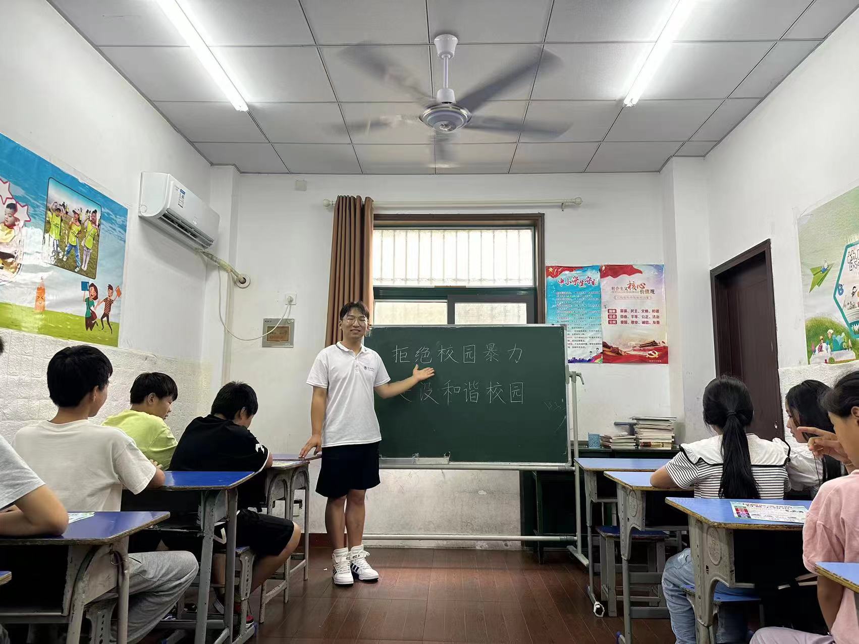 2024年7月15日下午,團隊8名成員在指導老師褚業嫻的帶領下,來到位于巢湖市東塘社區世紀新都小區的巢湖市“啟一點校外托管機構”開展普法宣講活動。“啟一點校外托管機構”是經巢湖市教育局認證的正規校外托管機構。由于對團隊普及的防范校園霸凌知識非常感興趣,“啟一點校外托管機構”的負責人與團隊積極配合,現場有許多小朋友及其家長、老師也積極參加活動。在褚業嫻老師的精心指導以及托管機構師生的積極配合下,活動最終順利完成。
