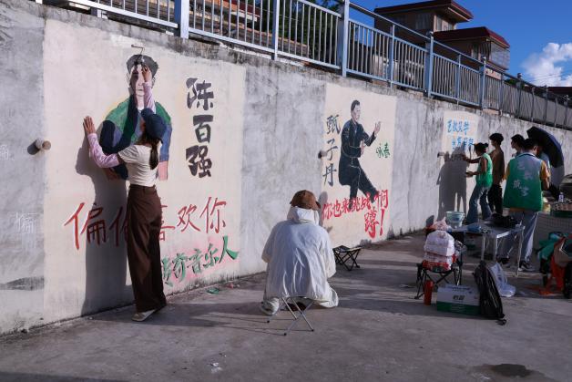 在內(nèi)容選取上,服務(wù)隊(duì)巧妙地結(jié)合了臺(tái)山市的當(dāng)?shù)靥厣瑢ふ伊硕辔慌_(tái)山籍名人,如BEYOND樂(lè)隊(duì)歌手黃家駒、著名歌手陳百?gòu)?qiáng)、葉問(wèn)飾演者甄子丹等,選取了他們的經(jīng)典造型或遺留照片,進(jìn)行墻繪創(chuàng)作。這些墻繪不僅展現(xiàn)了臺(tái)山的文化魅力,也傳遞了積極向上的精神力量。