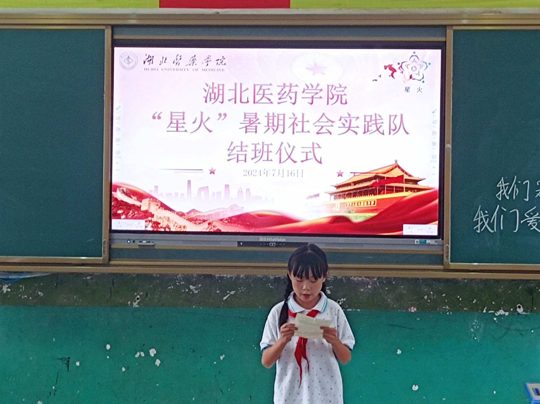 短暫的時光里,“星火”暑期社會實踐隊用心上好每一堂課,用愛澆灌每一顆善良的心靈,在丹江口市丁家營鎮小學傳播“五史”教育,弘揚紅色精神建黨精神,領悟革命英雄的愛國奉獻精神,激勵孩子們能夠在未來努力學習積極進取,為中華民族偉大復興而努力讀書。實踐隊相信,在當代青年一點一滴的努力下,以青春“星火”之輝,必將成奮進燎原之勢!