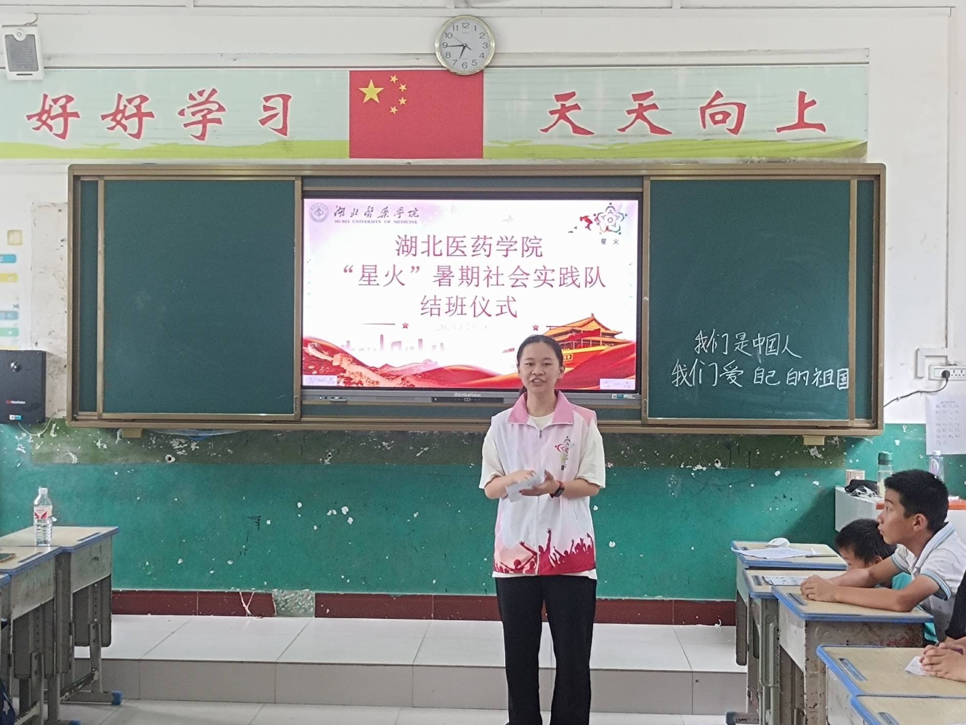 通訊員(楊璐璘)暴雨過后,天朗氣清惠風和暢,7月16日下午,湖北醫藥學院“星火”暑期社會實踐隊在丹江口市丁家營鎮小學開展了為期一周的暑期社會實踐活動圓滿落幕。團隊作為五史宣講團以“華夏奮進七五載,五史傳承續血脈”為主題為孩子們介紹了關于“五史”的相關知識,與孩子們共同慶祝偉大祖國的七十五周年華誕。