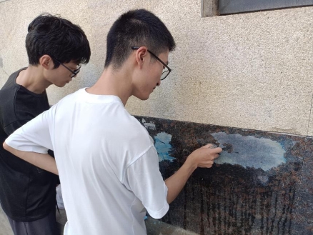 實踐隊員在鏟除街道居民住宅上的小廣告
