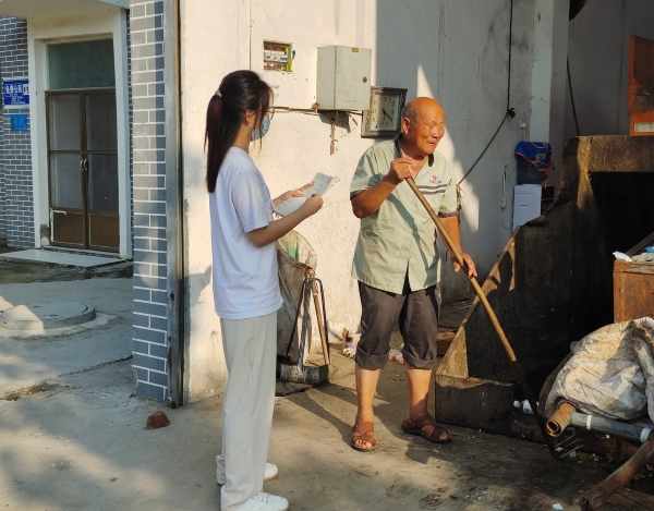 圖為實踐隊員與村民交流鄉村垃圾分類情況 中國青年網通訊員 陳文潔 攝
