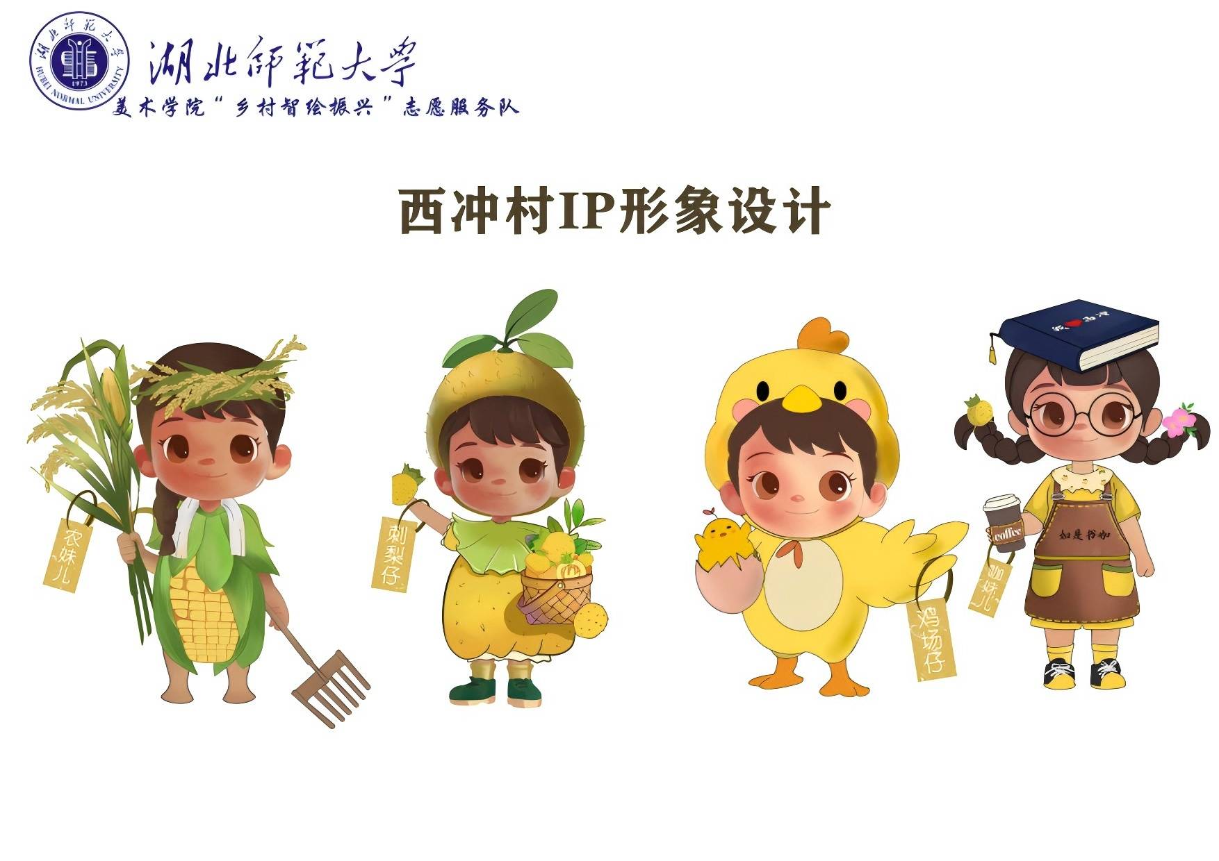 為了用美麗畫卷呈現西沖社區和美鄉村新愿景,線上設計組成員們挑燈夜戰,在環境設計專業老師楊璐的指導下,以西沖社區歷史文化、特色刺梨產業、極具代表性的農作物等元素為原型,一遍遍地修改著設計方案,最終創作了1座書咖3D設計、4個獨具西沖特色的IP形象設計、9幅展現靈秀西沖的墻繪方案。