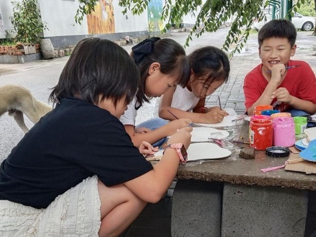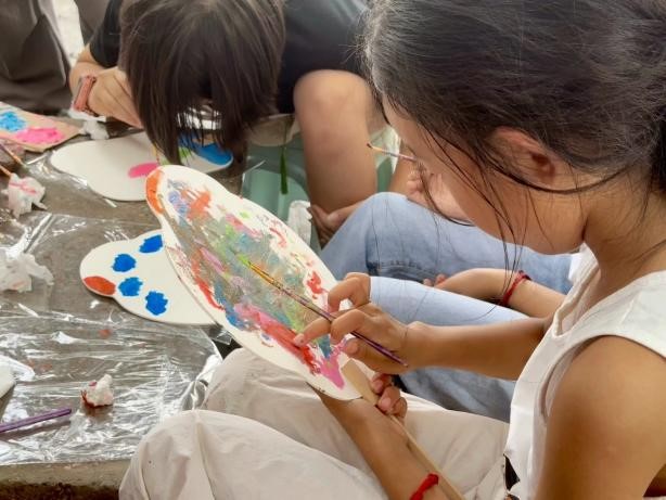 圖為團(tuán)隊(duì)成員在馬莊開展紙扇繪制活動(dòng)中繪制場(chǎng)景