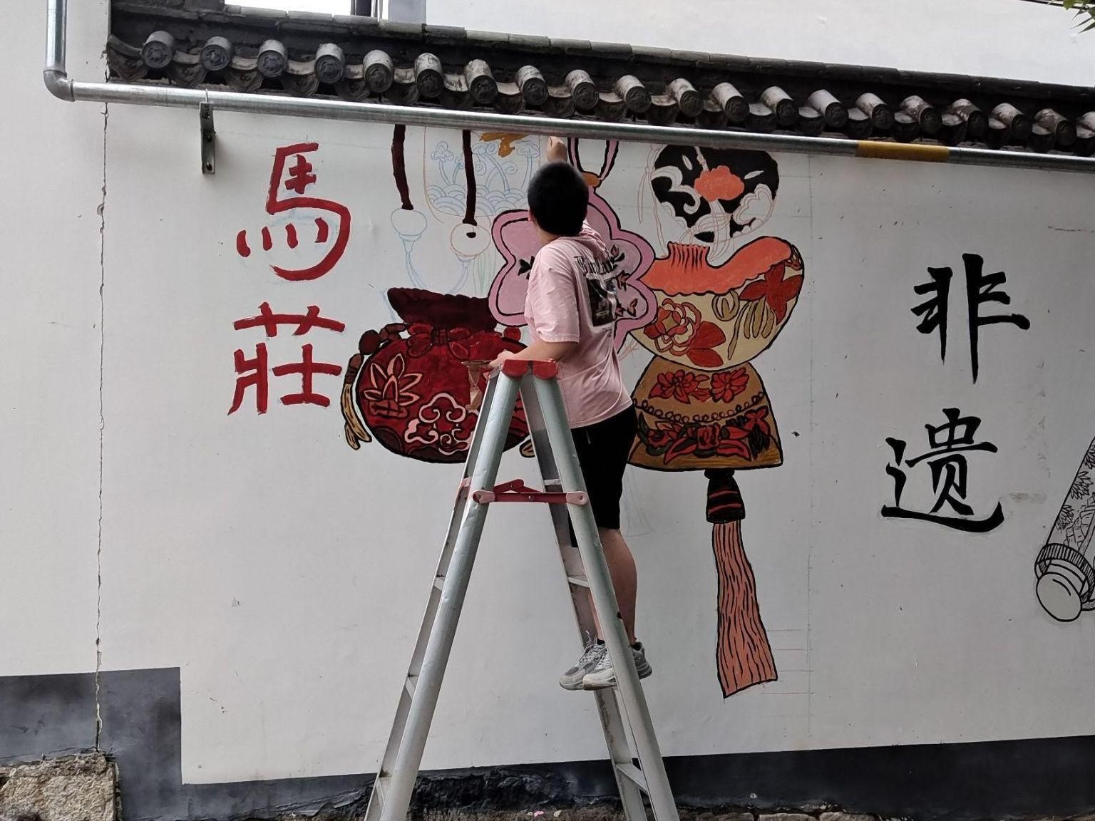 7月16日至25日,建筑與設(shè)計(jì)學(xué)院“手繪鄉(xiāng)村新畫卷”實(shí)踐團(tuán)赴徐州市賈汪區(qū)馬莊村和徐州市睢寧縣高作鎮(zhèn)高作社區(qū)開展墻繪與紙扇創(chuàng)作。在馬莊村的社會(huì)實(shí)踐過(guò)程中,學(xué)生與馬莊村民進(jìn)行了深入的交流互動(dòng),透過(guò)走訪村里街道,了解當(dāng)?shù)氐漠a(chǎn)業(yè)結(jié)構(gòu)和文化傳統(tǒng)。旨在通過(guò)專業(yè)手繪技藝與設(shè)計(jì)圖畫和繪圖,助力鄉(xiāng)村振興,同時(shí)提升學(xué)生的社會(huì)實(shí)踐能力和藝術(shù)創(chuàng)造力。同時(shí),實(shí)踐團(tuán)還利用專業(yè)優(yōu)勢(shì),積極召集當(dāng)?shù)卮迕窆餐_展手繪扇子活動(dòng),將繪畫的藝術(shù)感染到群眾。團(tuán)隊(duì)成員們帶著滿腔熱情與專業(yè)素養(yǎng),踏上了這場(chǎng)文化與藝術(shù)的探索之旅。結(jié)束馬莊的繪制之后,建筑與設(shè)計(jì)學(xué)院學(xué)子接著奔赴睢寧縣高作鎮(zhèn)高作社區(qū)繼續(xù)新一輪墻面繪制實(shí)踐活動(dòng),設(shè)計(jì)并繪制了符合當(dāng)?shù)仫L(fēng)俗的具有濃濃鄉(xiāng)土味的作品。多日的墻壁繪制,不僅展示了建筑與設(shè)計(jì)學(xué)院學(xué)子的專業(yè)素養(yǎng)和創(chuàng)新能力,更體現(xiàn)了青年學(xué)子服務(wù)社會(huì)的責(zé)任感和使命感。同時(shí),也激發(fā)了更多人對(duì)鄉(xiāng)村文化的關(guān)注和興趣,為鄉(xiāng)村文化的傳承與發(fā)展注入了新的活力,更種下了服務(wù)鄉(xiāng)村、振興鄉(xiāng)村的堅(jiān)定信念。