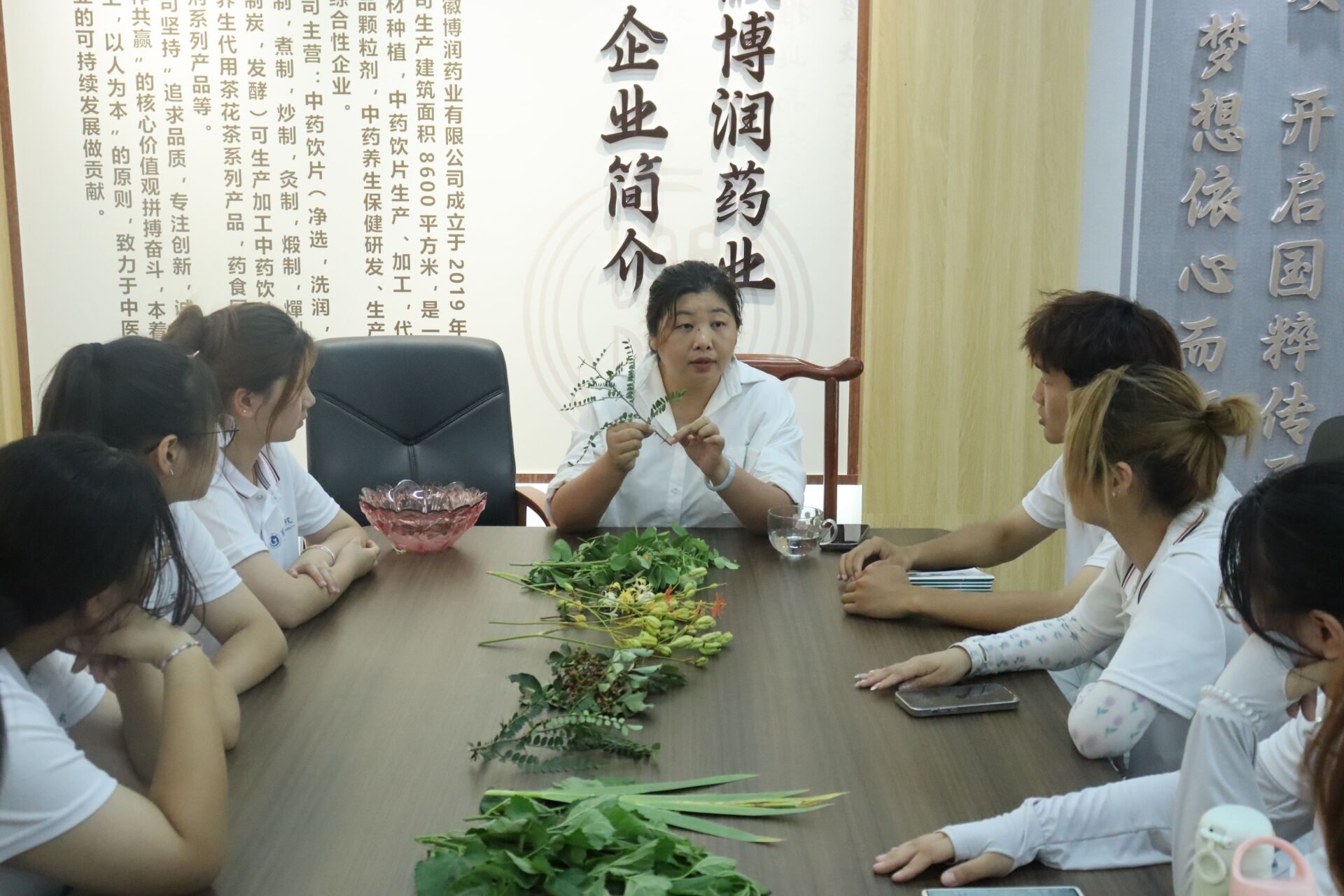 懷昭昭之志,堅(jiān)守自我,素履以往,方能“懼懷逸興壯思飛”。在公司大廳里,學(xué)生們和公司黃總圍坐在一張大桌旁,面前擺放著五彩斑斕的中草藥。在黃總的講解下,我們學(xué)會(huì)了如何通過(guò)觀察中藥的顏色、形狀、質(zhì)地等特征,初步判斷其性味歸經(jīng)及主要功效。比如,紅色的丹參活血通經(jīng),黃色的黃芪補(bǔ)氣升陽(yáng)..….每一次的辨識(shí),都是對(duì)中藥智慧的一次深刻領(lǐng)悟,讓學(xué)生們對(duì)中醫(yī)藥的博大精深有了更加直觀的認(rèn)識(shí)。期間,黃總還特色舉例說(shuō)明某些不法分子將紅花偽造成藏紅花,強(qiáng)調(diào)藥企制藥要注重良心。黃總還向我們強(qiáng)調(diào)中藥講究“千人千方”,通過(guò)辨證施治,中醫(yī)能夠?yàn)槊總(gè)患者提供最適合其個(gè)人情況的治療方案,從而達(dá)到更好的治療效果。這不僅體現(xiàn)了中醫(yī)藥的智慧,也為現(xiàn)代醫(yī)學(xué)提供了寶貴的參考和啟示。