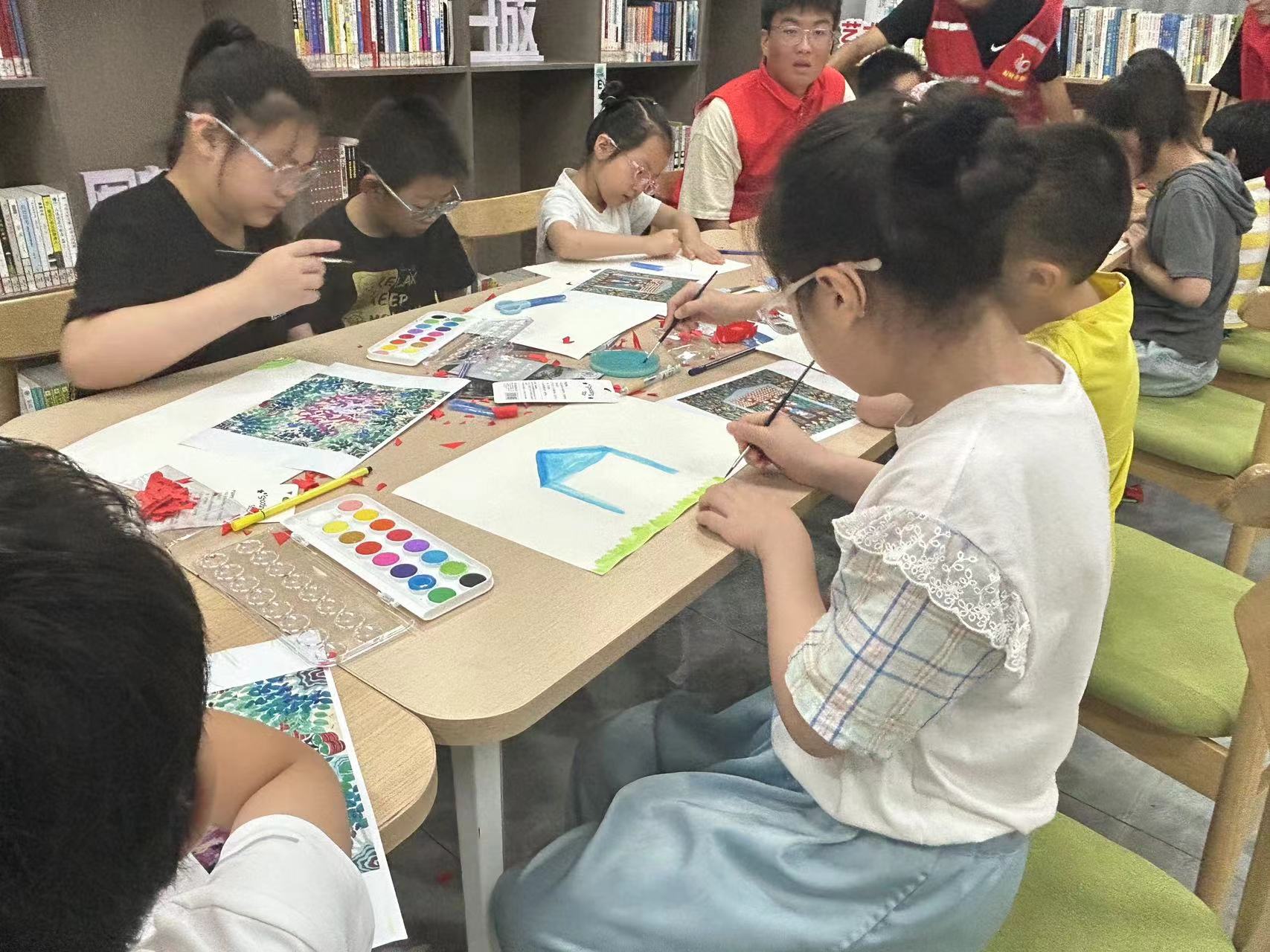 在龍鈺淑的指導(dǎo)下,孩子們開始嘗試自己動(dòng)手繪制射陽(yáng)農(nóng)民畫。她鼓勵(lì)孩子們大膽創(chuàng)作,用色彩和線條表達(dá)自己對(duì)生活的理解和感受。實(shí)踐團(tuán)成員們也積極參與,和孩子們一起交流創(chuàng)作心得,現(xiàn)場(chǎng)氣氛十分活躍。