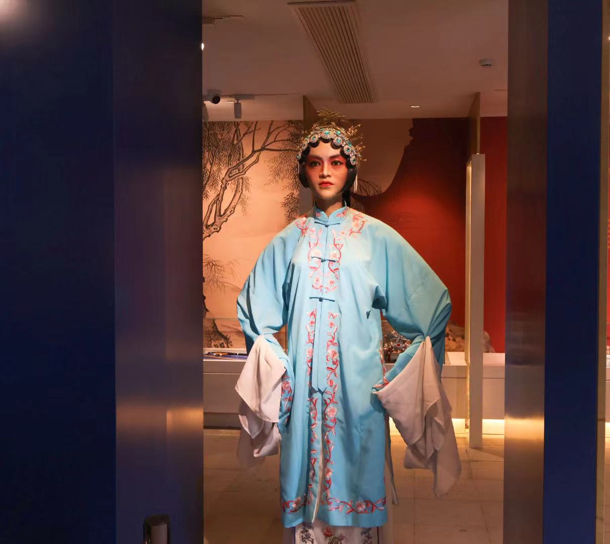 在淮劇小鎮(zhèn),實(shí)踐團(tuán)成員們感受到了這一獨(dú)特曲種的歷史分量。首先,他們參觀了冠服體驗(yàn)館和糧倉(cāng)藝術(shù)中心,其內(nèi)展出了大量關(guān)于淮劇歷史發(fā)展的珍貴資料和實(shí)物,包括古老的戲服、戲曲道具和歷史文獻(xiàn)。通過這些展品,實(shí)踐團(tuán)成員們了解到了淮劇從萌芽、發(fā)展到繁榮的整個(gè)過程,以及它在中國(guó)戲曲史上的獨(dú)特地位。