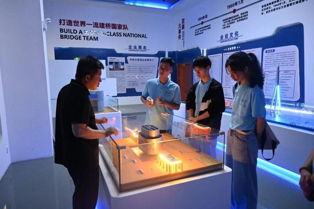 實踐團成員在講解員的帶領下,逐一走過“創業初期”、“跨越發展”、“科技引領”和“社會責任”四大展區,深入了解了中鐵大橋二公司如何在一次次挑戰中砥礪前行,用一座座橋梁聯通大江南北,書寫著中國橋梁建設的壯麗篇章。