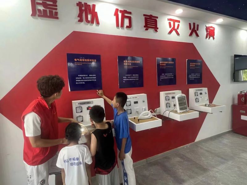 為了讓小朋友們更直觀地了解消防器材的使用方法,實踐隊隊員們還帶來了滅火器、消防栓等實物,并現(xiàn)場進行了演示。在隊員們的指導下,小朋友們親自體驗了如何正確操作滅火器,增強了實際操作能力。