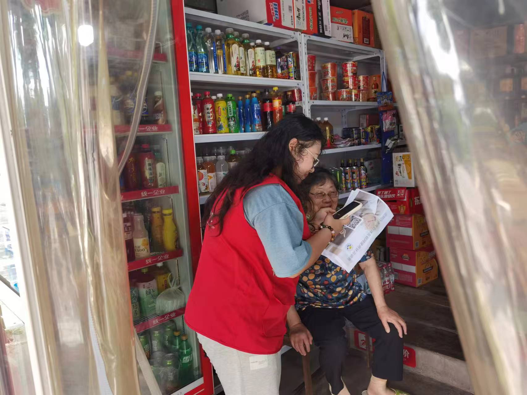 圖為值志愿者在商店與老人交談。林奇奇 攝