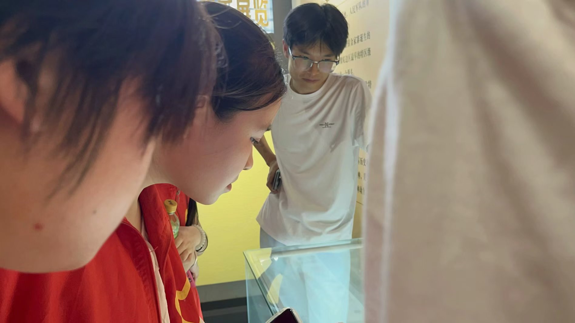 圖為大學生村官為實踐團成員講解紅色歷史。欒秀英 供圖