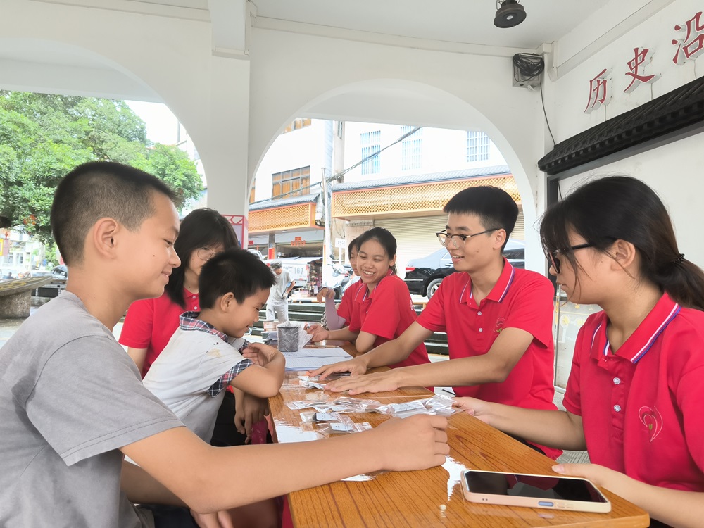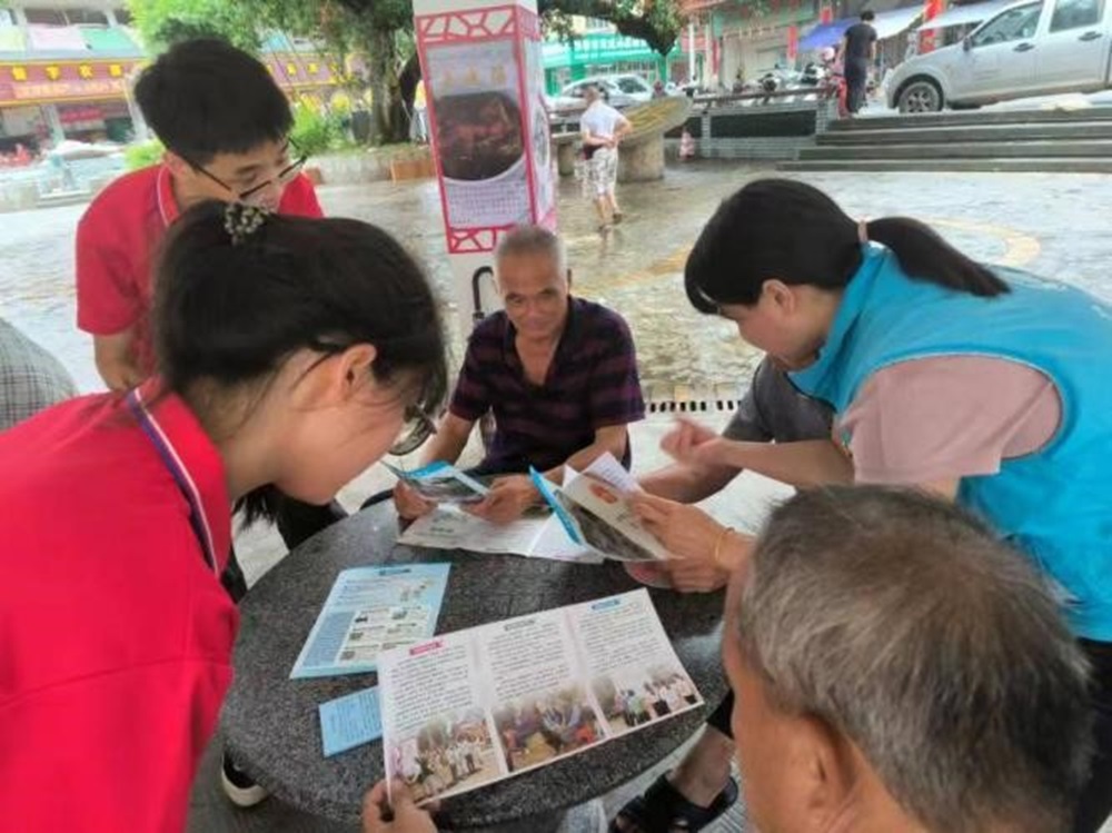 資助政策宣傳活動還受到了雙滘鎮社工站的大力支持。團隊成員在雙滘鎮人流量較大的榕樹頭公園設置“資助政策咨詢點”攤位,通過發放宣傳手冊、生源地助學貸款申請指南等形式向當地居民進行宣傳,并與雙滘鎮社工站聯合開展了政策宣傳志愿服務活動,共同宣傳和科普國家資助政策、新型詐騙手段等內容,加深村民對國家資助政策的理解,增強村民們的防詐騙意識。雙滘鎮社工站副站長王女士深情地表示,“國家資助和助學貸款”政策宣傳活動與社工站正在進行的“兜底民生服務”政策宣傳活動,總體目標和方向是一致的,都是為了傳遞國家政策的溫暖、切實為百姓謀福利。